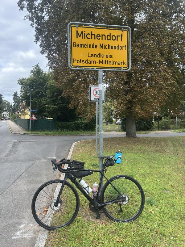 Irgendwann wurden die Häuser aber niedriger, der Verkehr weniger. Es ging in die Randbezirke und schließlich wieder nach Brandenburg. Ca. 2 Std. seit Tourbeginn war ich aus Berlin wieder raus. Es ging dann noch über die A 115 und dann erst über die A 10 und damit war ich auch außerhalb des Berliner Rings. Ich wußte, dass die Radwege hier gut ausgebaut sind. In Berlin war an einigen Stellen doch eher schlechtes Pflaster oder aufgebrochener Belag. Hier rollte es wieder gut – das Problem war eher, dass doch ein nicht mehr ganz so leichter Gegenwind herrschte. Aber es rollte eben. In Michendorf machte ich 5 min Pause an einer Bank und verputzte den 2. Riegel – oder war es schon der 3.? Es ging aber zügig – zumindest für meine Verhältnisse – weiter.