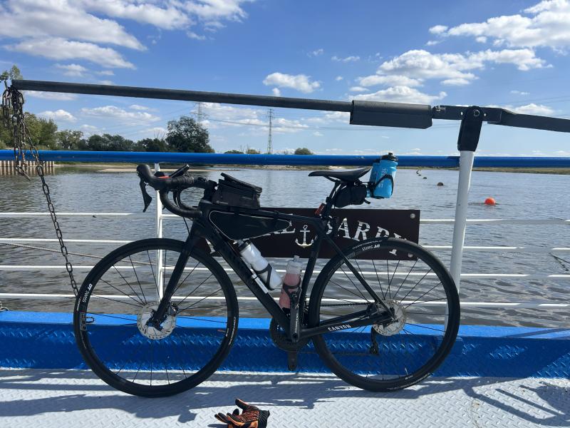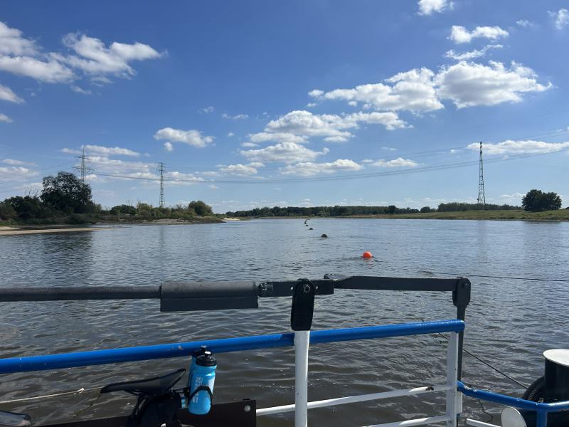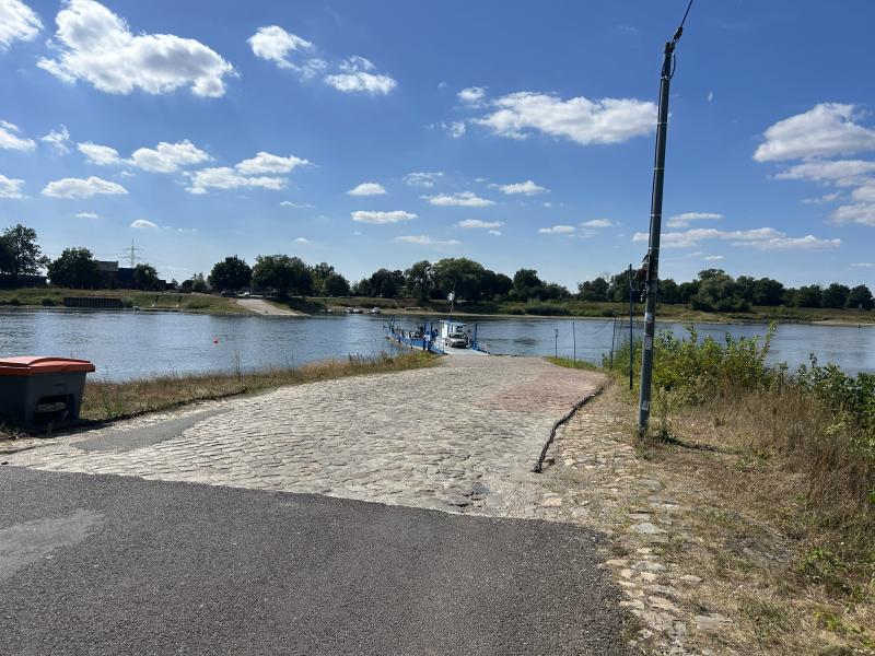 Weiter ging es nach Wiesenburg – und schon war ich in Sachsen-Anhalt. Nächste größere Stadt war Zerbst. Hier habe ich irgendwo in einer Seitenstraße eine kurze Pause gemacht und wieder eine Kleinigkeit gegessen, bevor es weiter zur Elbe ging. Die Straßen wurden wieder schmaler, der Belag etwas schlechter, aber immer noch gut genug. So kam ich nach Ronney, rollte durch und war an der Elbe. Die Fähre kam, ich fuhr rauf, zahlte meine 2 € und ließ mich übersetzten, mit an Bord 2 oder 3 Autos…